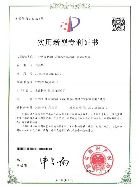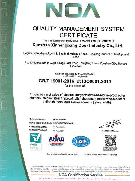 Certification certificate of steel fireproof and smoke proof rolling shutter fire protection products